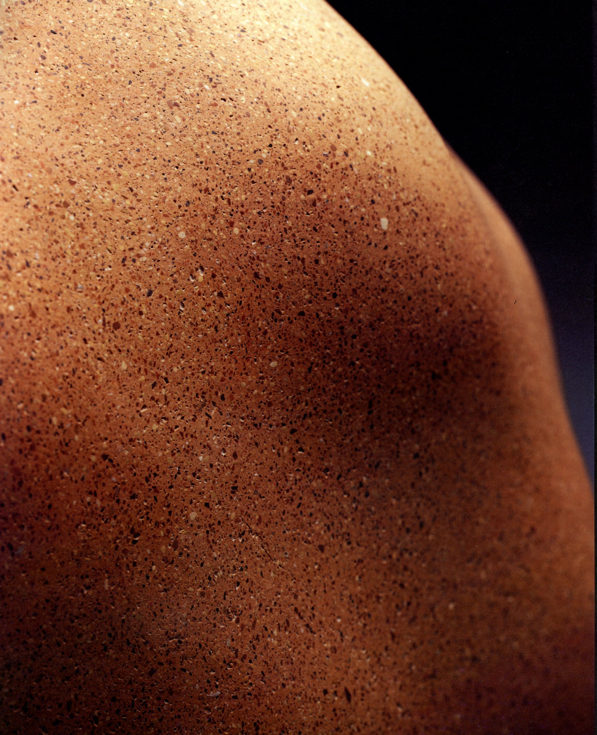 Detail of Misfit 2001 Hand formed with aerated blue clay, with aggregates of fired porcelain Bowl: 35x58x58 cmx Ball: 35x58x58 cms